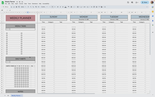 Weekly Workout Planner Spreadsheet | Google Sheets