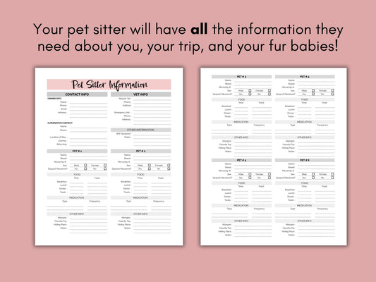 Pet Sitter Instructions | Google Sheets Template | Printable