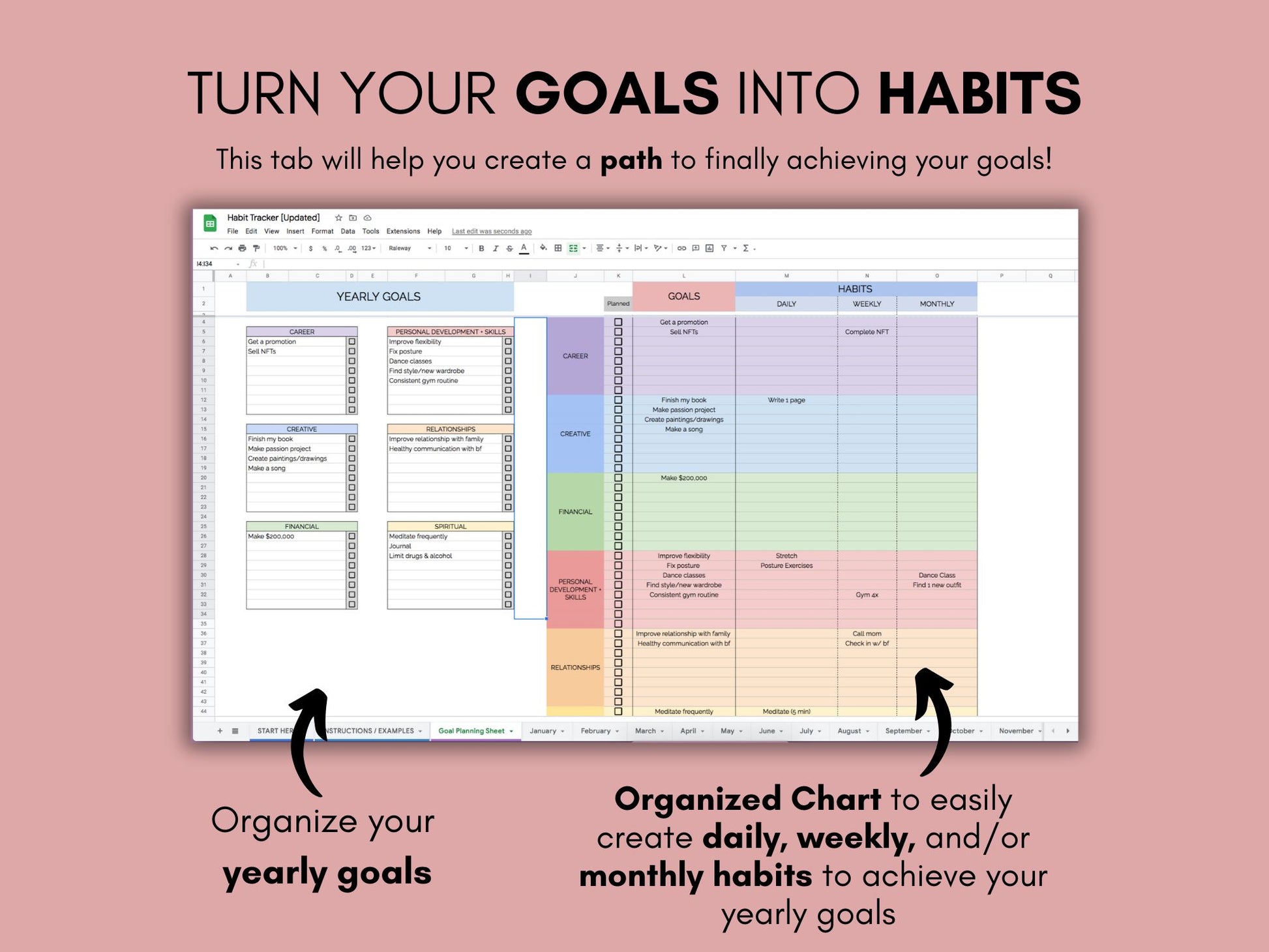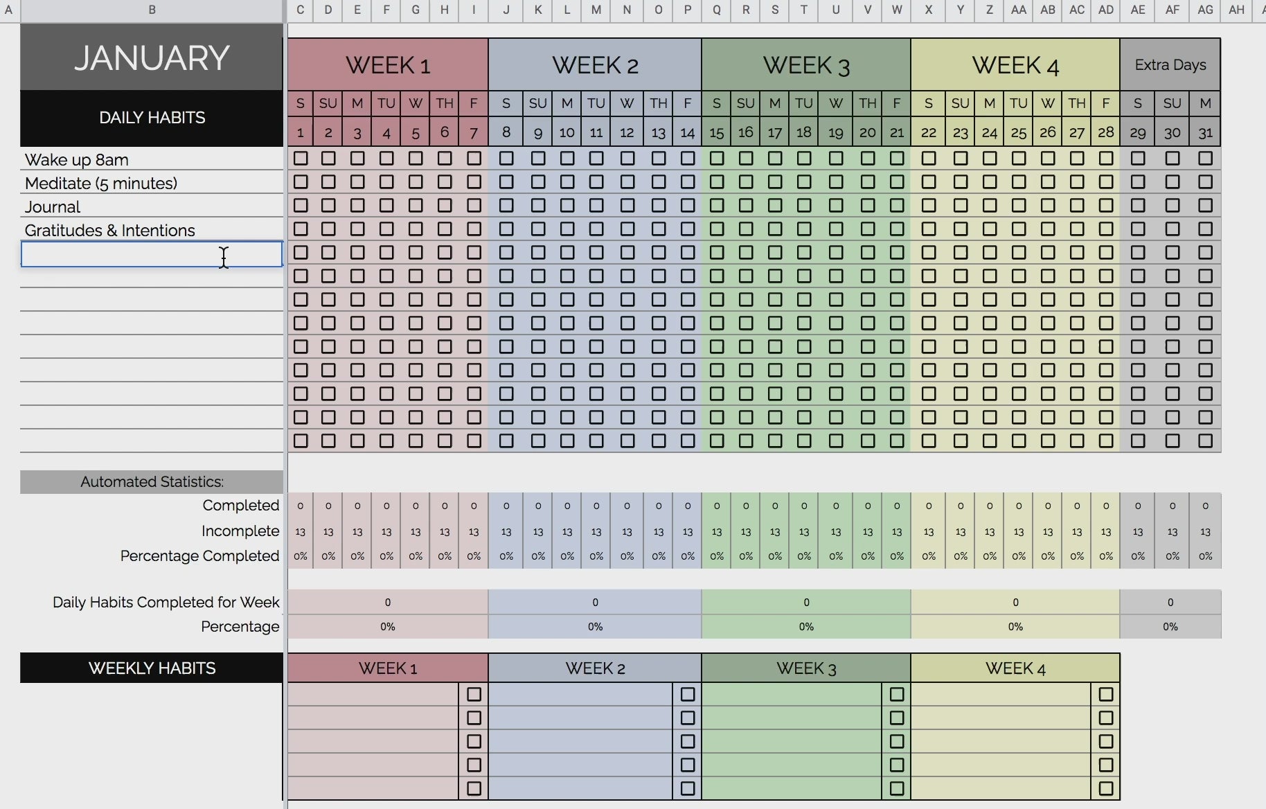 - Start with goal-setting sheets that help you outline your habits and set clear intentions.