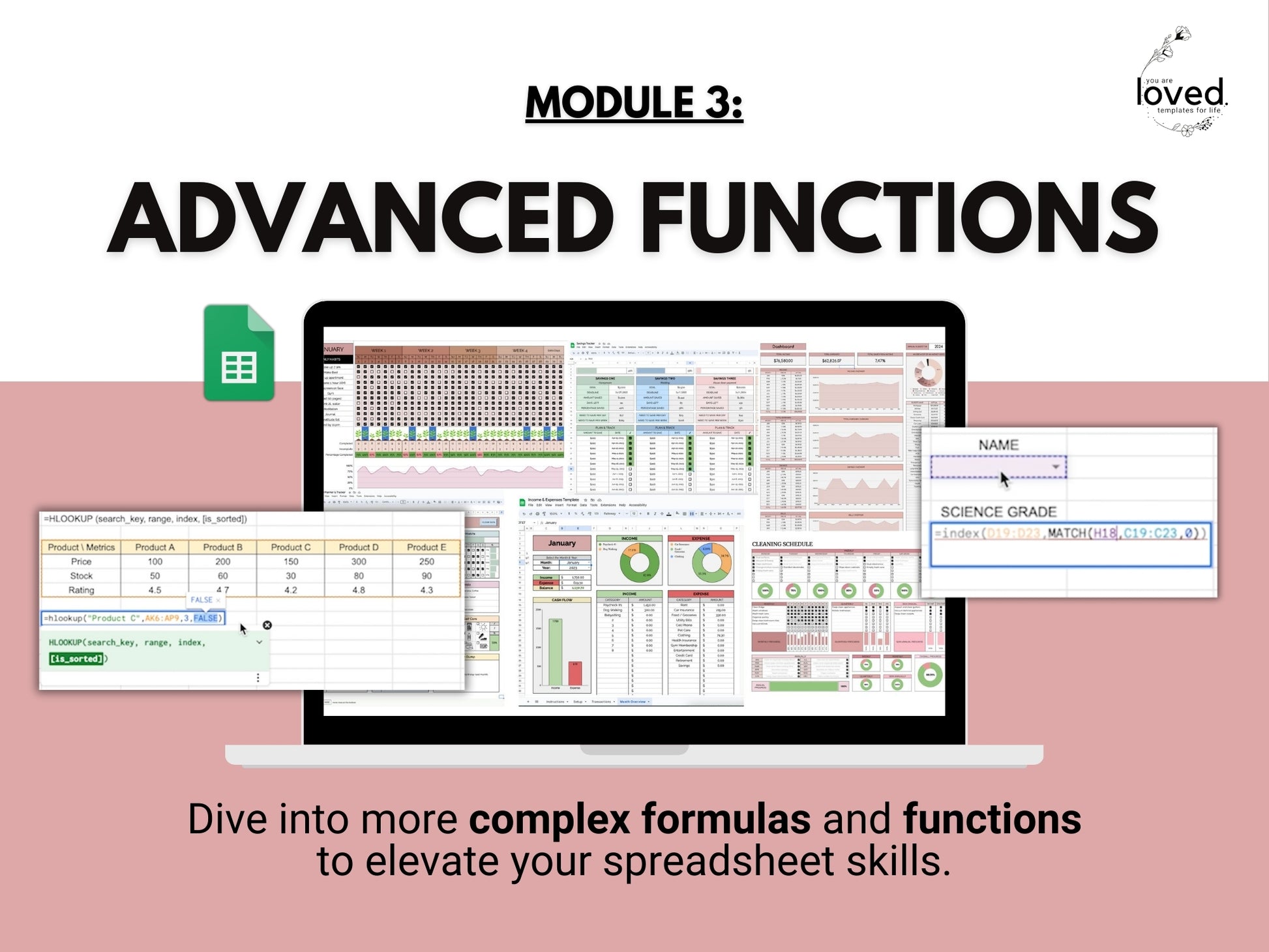 Take your Google Sheets skills to the next level with our Advanced Functions module. This module covers 10 powerful functions, including INDEX, MATCH, FILTER, and QUERY, that will enhance your data analysis capabilities. Perfect for users who are comfortable with basic functions and ready to tackle more complex formulas. By the end of this module, you'll be able to create dynamic, data-driven spreadsheets with ease.