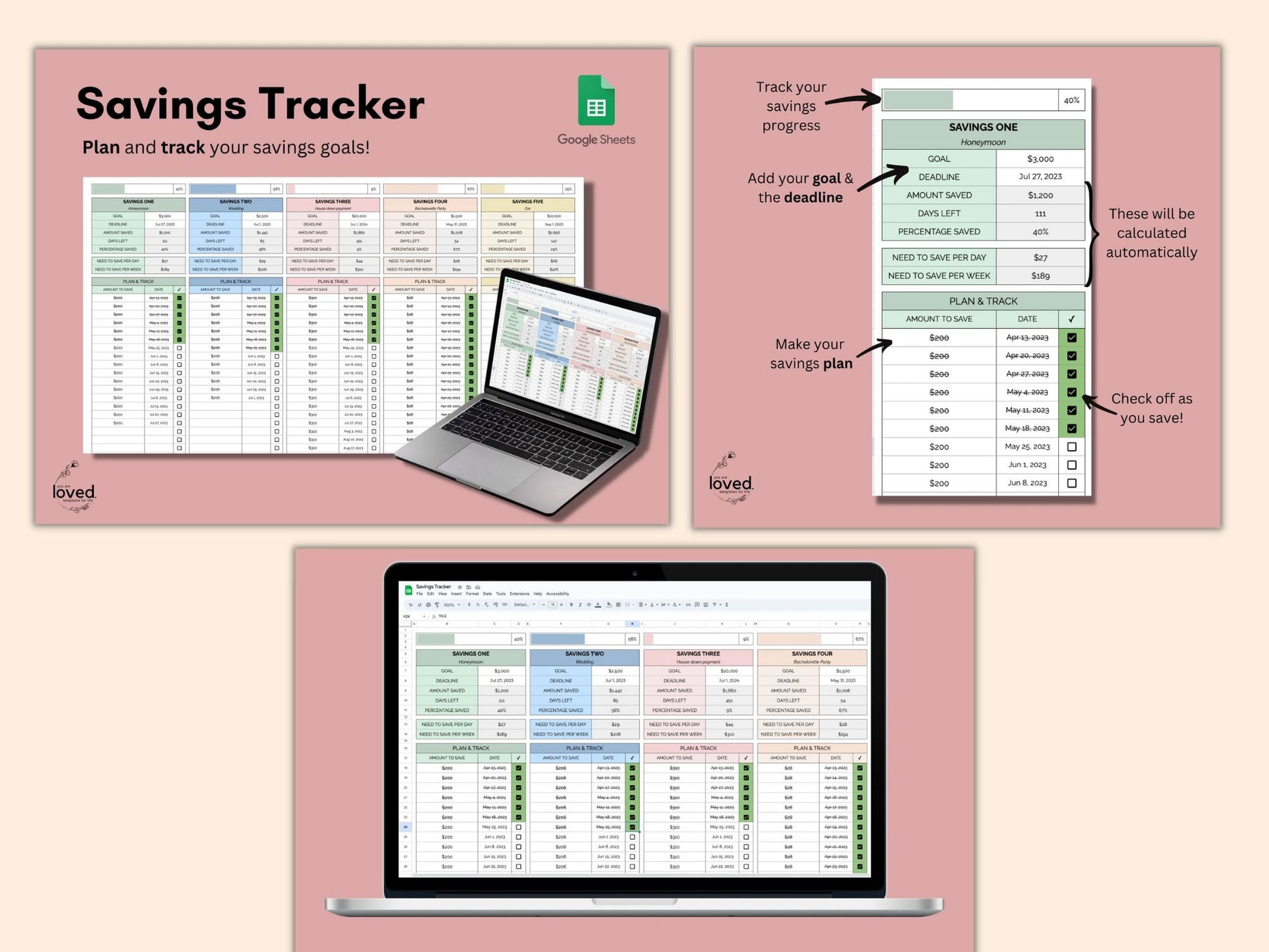 - Savings Tracker: This template is designed to help you achieve your savings goals by specifying what you're saving for, how much you need to save, and the deadline for reaching your goal. The template will then help you create a savings plan that can be daily, weekly, monthly, or any other interval that works for you, and track your progress automatically as you save money towards your goal.