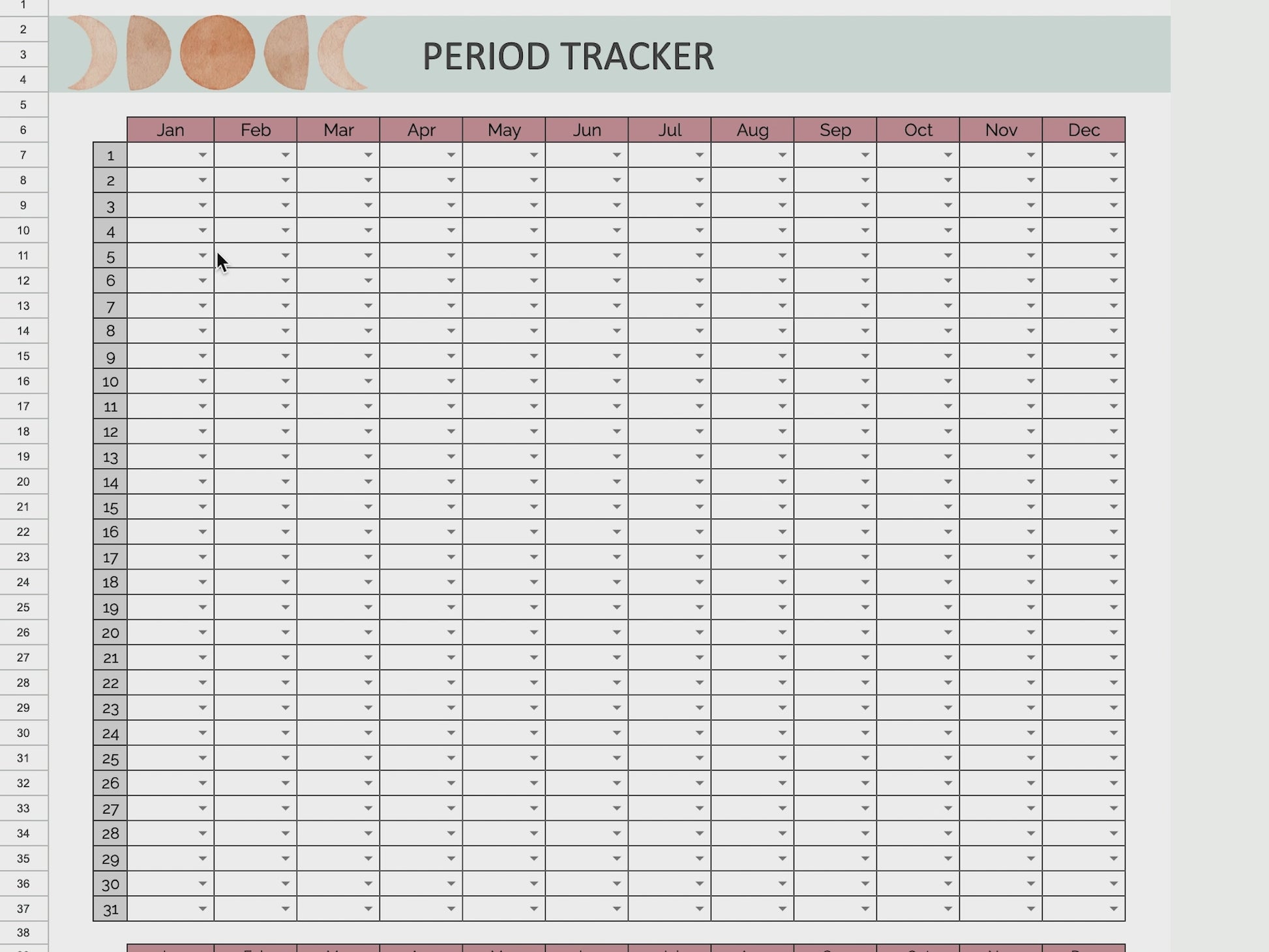 - PERIOD TRACKER: This yearly tracker allows you to easily tracker your period each month and see the length of your cycle.