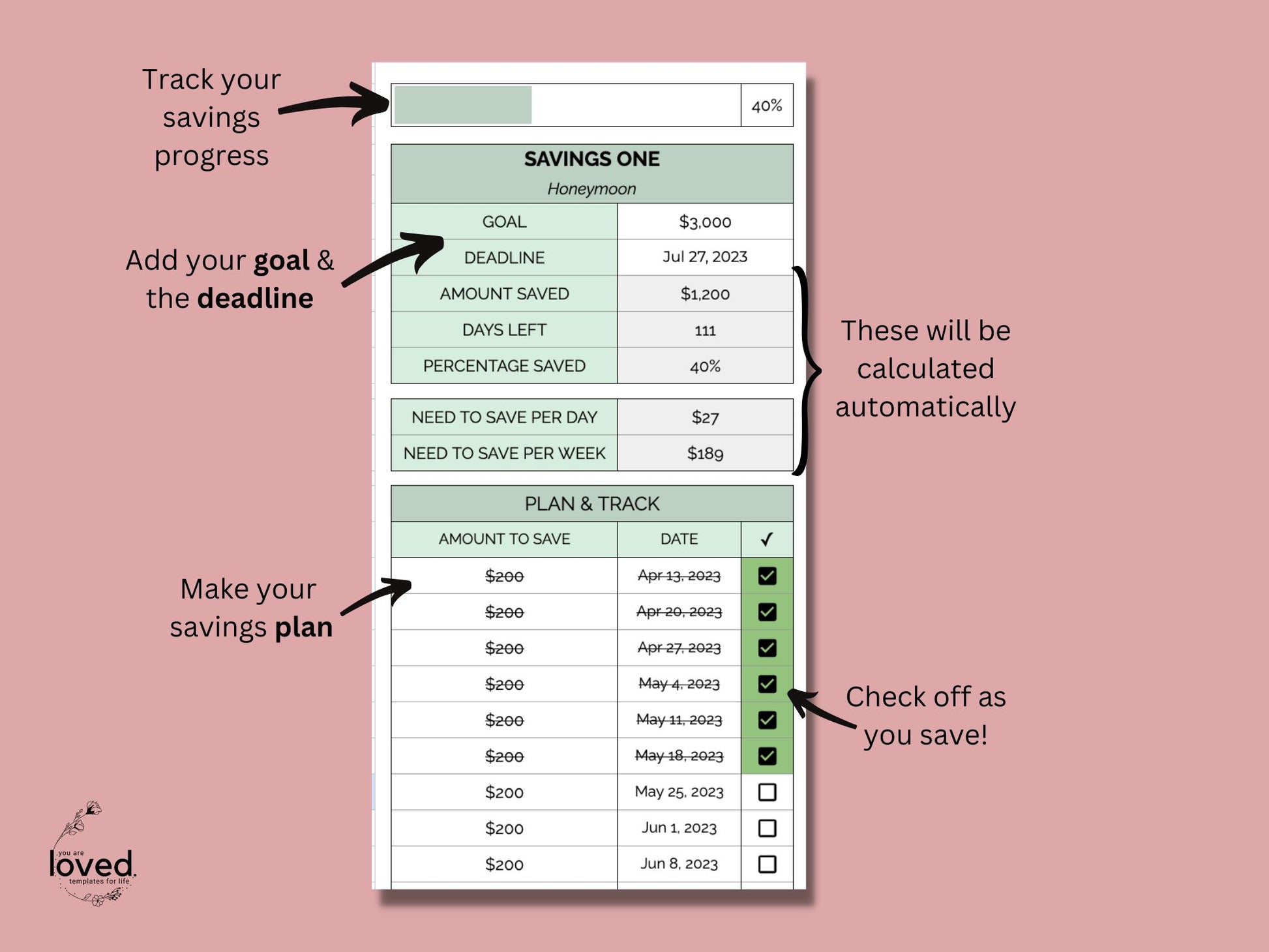 Our Savings Tracker spreadsheet template is designed to help you achieve your financial goals. With this template, you can: